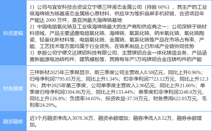 该股为有色 · 镁,液态金属,有色 · 锆概念热股,当日有色 · 镁概念上涨2.67%,液态金属概念上涨2.02%,有色 · 锆概念上涨1.73%。