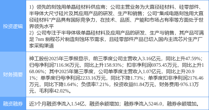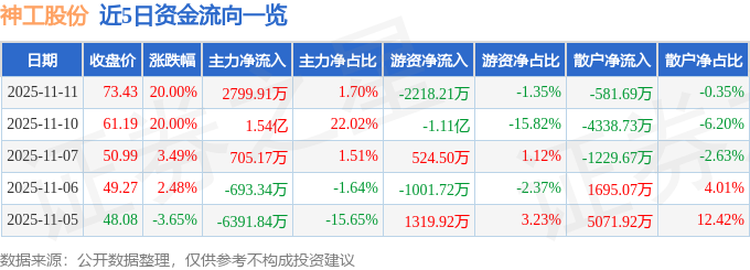 证券之星消息,神工股份11月11日涨停收盘,收盘价73.43元。该股于9点31分涨停,8次打开涨停,截止收盘封单资金为168.51万元,占其流通市值0.01%。