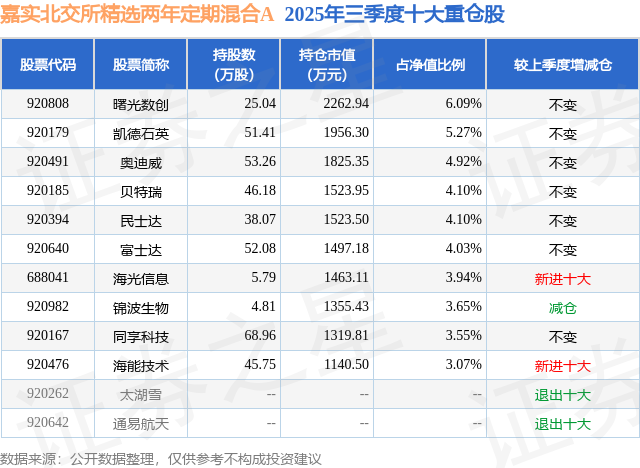 嘉实北交所精选两年定期混合A的前十大重仓股如下: