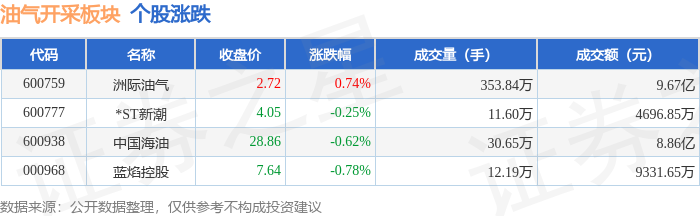 从资金流向上来看,当日油气开采板块主力资金净流出1266.07万元,游资资金净流入1469.26万元,散户资金净流出203.19万元。油气开采板块个股资金流向见下表: