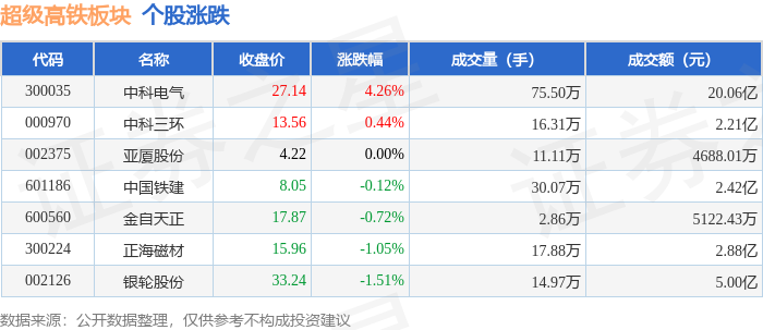 证券之星消息,11月11日超级高铁板块较上一交易日上涨0.01%,中科电气领涨。当日上证指数报收于4002.76,下跌0.39%。深证成指报收于13289.0,下跌1.03%。超级高铁板块个股涨跌见下表: