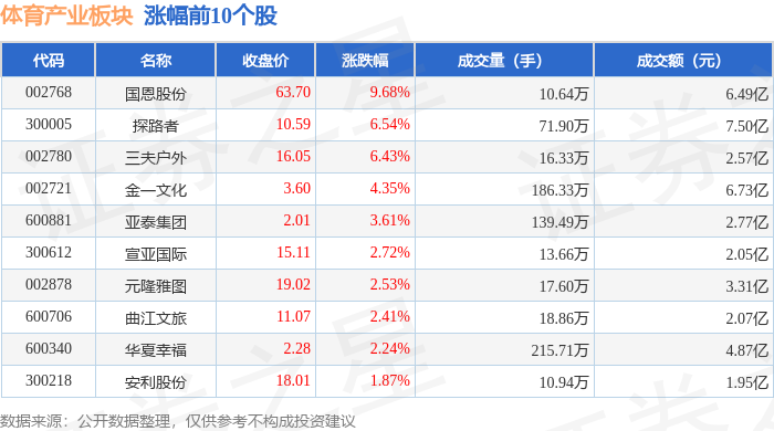 从资金流向上来看,当日体育产业板块主力资金净流出8.37亿元,游资资金净流入1.18亿元,散户资金净流入7.19亿元。体育产业板块个股资金流向见下表: