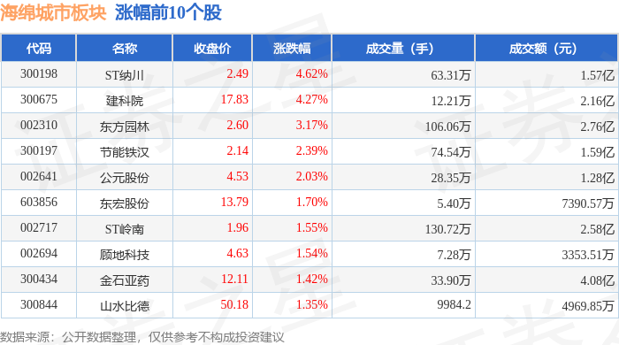 证券之星消息,11月11日海绵城市板块较上一交易日上涨0.62%,ST纳川领涨。当日上证指数报收于4002.76,下跌0.39%。深证成指报收于13289.0,下跌1.03%。海绵城市板块个股涨跌见下表: