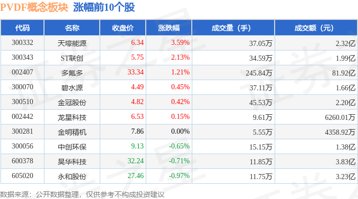 证券之星消息,11月11日PVDF概念板块较上一交易日下跌1.86%,三美股份领跌。当日上证指数报收于4002.76,下跌0.39%。深证成指报收于13289.0,下跌1.03%。PVDF概念板块个股涨跌见下表: