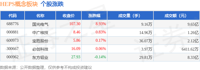 证券之星消息,11月11日HEPS概念板块较上一交易日上涨2.31%,国光电气领涨。当日上证指数报收于4002.76,下跌0.39%。深证成指报收于13289.0,下跌1.03%。HEPS概念板块个股涨跌见下表:
