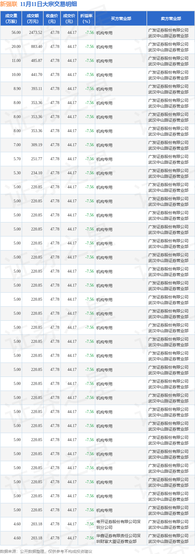 证券之星消息,11月11日新强联发生大宗交易,交易数据如下: