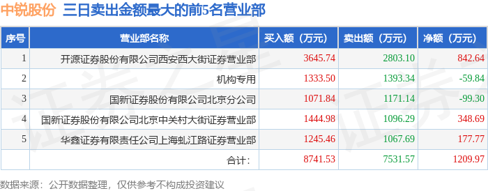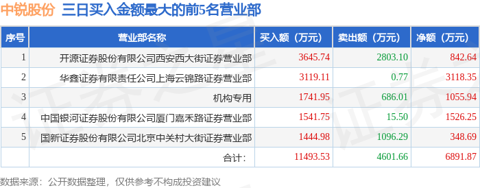 证券之星消息,沪深交易所2025年11月11日公布的交易公开信息显示,中锐股份(002374)因连续三个交易日内,涨幅偏离值累计达到20%的证券登上龙虎榜。此次是近5个交易日内第1次上榜。