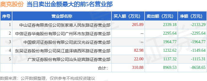 证券之星消息,沪深交易所2025年11月11日公布的交易公开信息显示,奥克股份(300082)因日涨幅达到15%的前5只证券登上龙虎榜。此次是近5个交易日内第1次上榜。