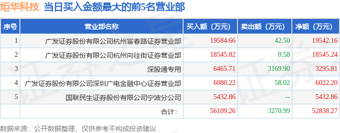 证券之星消息,沪深交易所2025年11月11日公布的交易公开信息显示,炬华科技(300360)因日涨幅达到15%的前5只证券登上龙虎榜。此次是近5个交易日内第1次上榜。