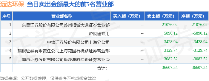 证券之星消息,沪深交易所2025年11月11日公布的交易公开信息显示,远达环保(600292)因有价格涨跌幅限制的日收盘价格跌幅偏离值达到7%的前五只证券登上龙虎榜。此次是近5个交易日内第2次上榜。