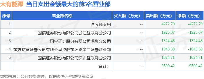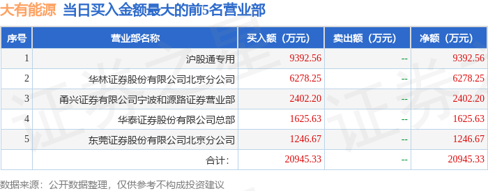 证券之星消息,沪深交易所2025年11月11日公布的交易公开信息显示,大有能源(600403)因有价格涨跌幅限制的日收盘价格涨幅偏离值达到7%的前五只证券登上龙虎榜。此次是近5个交易日内第3次上榜。