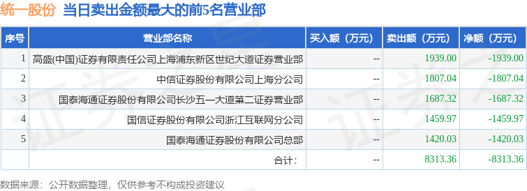 证券之星消息,沪深交易所2025年11月11日公布的交易公开信息显示,统一股份(600506)因有价格涨跌幅限制的日换手率达到20%的前五只证券登上龙虎榜。此次是近5个交易日内第5次上榜。