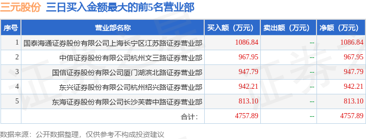 证券之星消息,沪深交易所2025年11月11日公布的交易公开信息显示,三元股份(600429)因有价格涨跌幅限制的日收盘价格涨幅偏离值达到7%的前五只证券,非ST、*ST和S证券连续三个交易日内收盘价格涨幅偏离值累计达到20%的证券登上龙虎榜。此次是近5个交易日内第1次上榜。