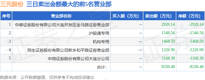 从龙虎榜公布的三日买卖数据来看,机构合计净卖出1468.59万元,北向资金合计净卖出1546.56万元。章盟主等知名游资榜上有名。(知名游资章盟主一般指国泰海通证券股份有限公司上海长宁区江苏路证券营业部席位,根据市场资料整理,仅供参考)