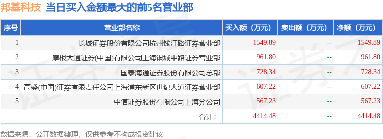 证券之星消息,沪深交易所2025年11月11日公布的交易公开信息显示,邦基科技(603151)因有价格涨跌幅限制的日收盘价格跌幅偏离值达到7%的前五只证券登上龙虎榜。此次是近5个交易日内第1次上榜。