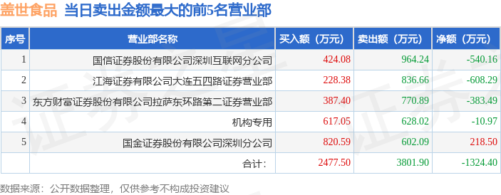 证券之星消息,沪深交易所2025年11月11日公布的交易公开信息显示,盖世食品(920826)因当日换手率达到20%的前5只股票登上龙虎榜。此次是近5个交易日内第3次上榜。