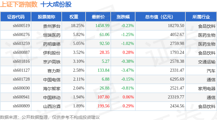 上证下游(000096)指数十大成份股详情如下:
