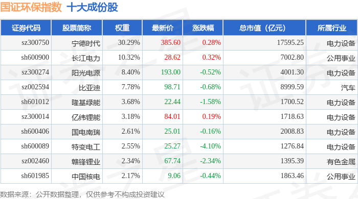 证券之星消息,11月11日,国证环保(399358)指数报收于5870.65点,跌0.45%,成交1096.29亿元,换手率1.37%。当日该指数成份股中,上涨的有12家,阿特斯以8.65%的涨幅领涨,下跌的有27家,特变电工以4.1%的跌幅领跌。
