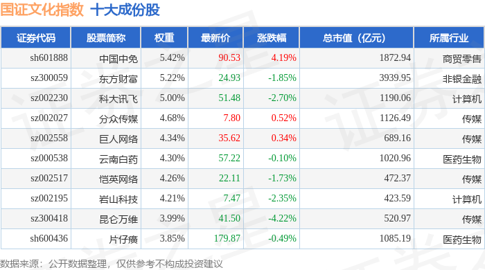 资金流向方面,国证文化(399397)指数成份股当日主力资金净流出合计40.5亿元,游资资金净流入合计10.76亿元,散户资金净流入合计29.74亿元。成份股资金流向详情见下表: