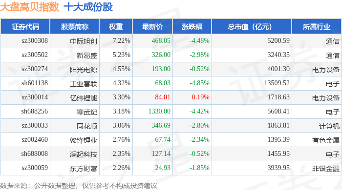 证券之星消息,11月11日,大盘高贝(399405)指数报收于3162.97点,跌1.65%,成交1888.0亿元,换手率1.31%。当日该指数成份股中,上涨的有11家,中国中免以4.19%的涨幅领涨,下跌的有39家,工业富联以4.85%的跌幅领跌。