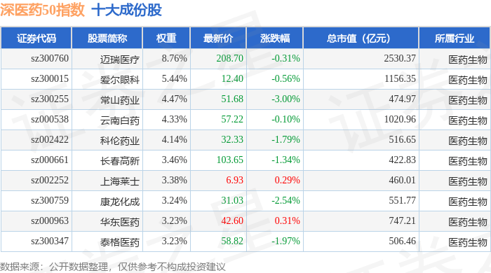 证券之星消息,11月11日,深医药50(399647)指数报收于8425.11点,跌0.19%,成交221.61亿元,换手率1.48%。当日该指数成份股中,上涨的有25家,以岭药业以6.61%的涨幅领涨,下跌的有25家,华兰疫苗以3.07%的跌幅领跌。