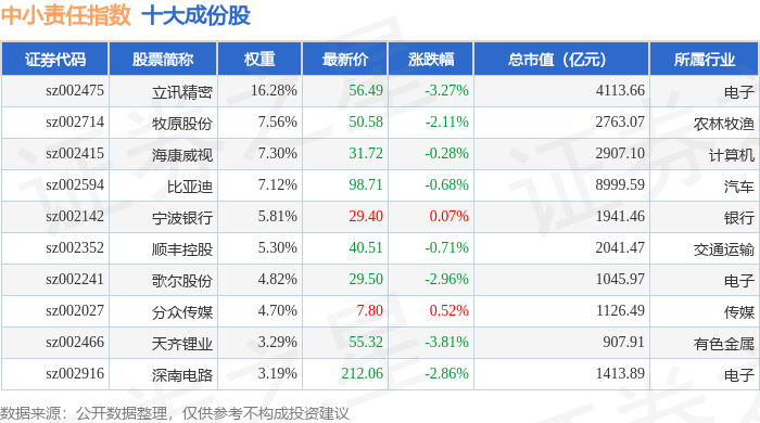 中小责任(399651)指数十大成份股详情如下: