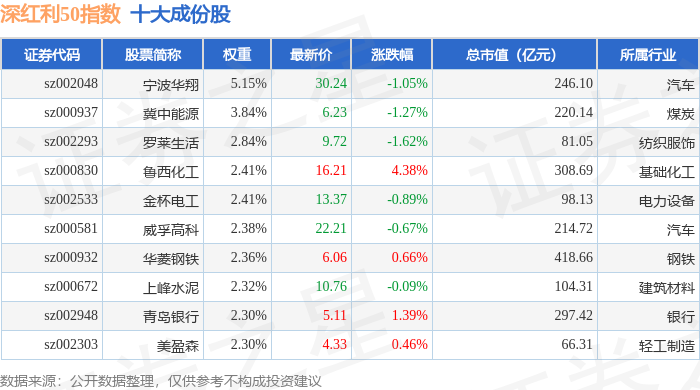 证券之星消息,11月11日,深红利50(399672)指数报收于4288.72点,涨0.31%,成交145.19亿元,换手率1.43%。当日该指数成份股中,上涨的有30家,特一药业以10.0%的涨幅领涨,下跌的有20家,电投能源以3.66%的跌幅领跌。