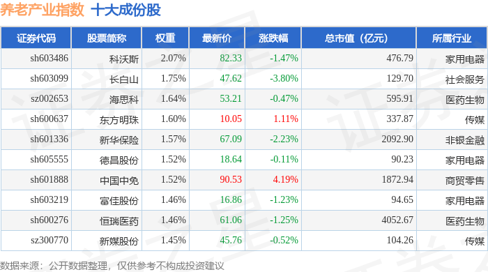 资金流向方面,养老产业(399812)指数成份股当日主力资金净流出合计14.52亿元,游资资金净流入合计3.13亿元,散户资金净流入合计11.39亿元。成份股资金流向详情见下表:
