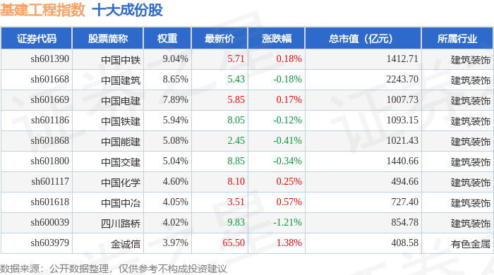 基建工程(399995)指数十大成份股详情如下:
