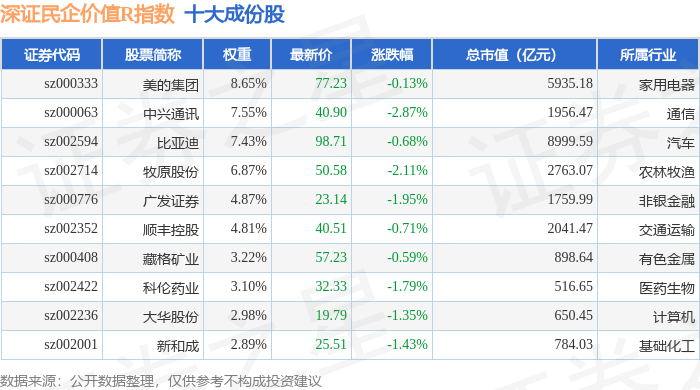 资金流向方面,深证民企价值R(470072)指数成份股当日主力资金净流出合计30.09亿元,游资资金净流入合计12.05亿元,散户资金净流入合计18.05亿元。成份股资金流向详情见下表:
