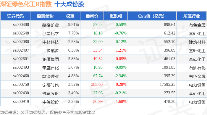 深证绿色化工R(470076)指数十大成份股详情如下: