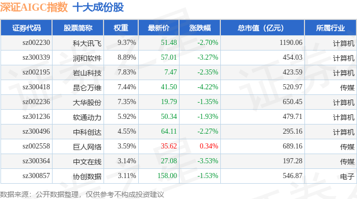 资金流向方面,深证AIGC(970075)指数成份股当日主力资金净流出合计44.95亿元,游资资金净流入合计14.13亿元,散户资金净流入合计30.82亿元。成份股资金流向详情见下表: