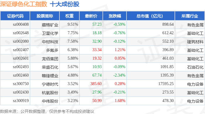 深证绿色化工(970076)指数十大成份股详情如下: