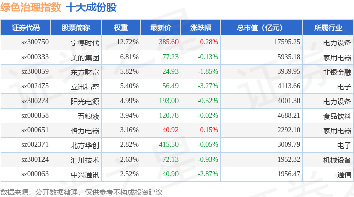 绿色治理(980058)指数十大成份股详情如下: