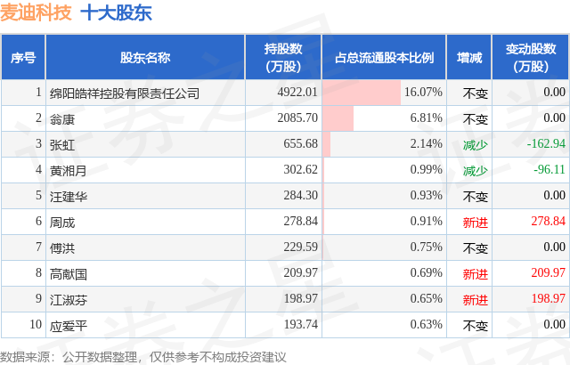 根据麦迪科技2025年三季报公布的十大股东详情如下: