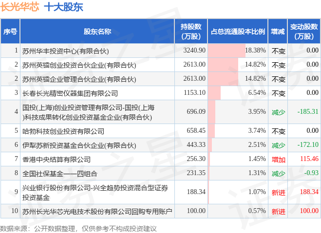 根据长光华芯2025年三季报公布的十大股东详情如下: