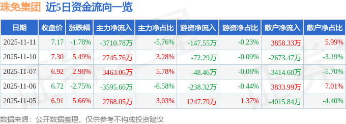 11月11日的资金流向数据方面,主力资金净流出3710.78万元,占总成交额5.76%,游资资金净流出147.55万元,占总成交额0.23%,散户资金净流入3858.33万元,占总成交额5.99%。