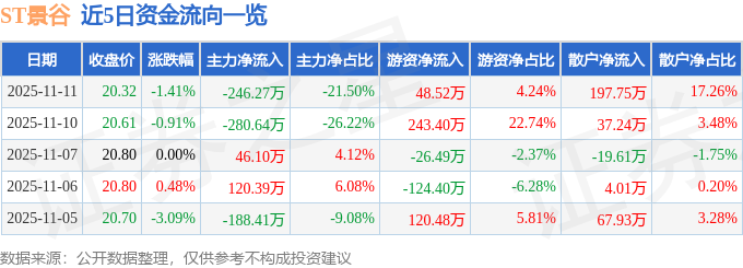 11月11日的资金流向数据方面,主力资金净流出246.27万元,占总成交额21.5%,游资资金净流入48.52万元,占总成交额4.24%,散户资金净流入197.75万元,占总成交额17.26%。