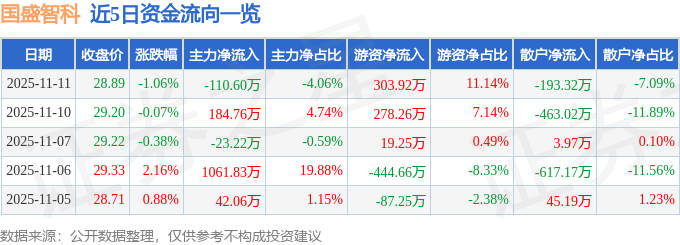 证券之星消息,截至2025年11月11日收盘,国盛智科(688558)报收于28.89元,下跌1.06%,换手率0.71%,成交量9370.0手,成交额2727.15万元。