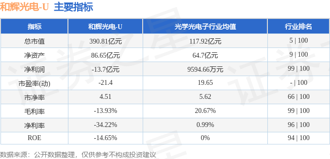 该股主要指标及行业内排名如下: