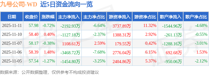 证券之星消息,截至2025年11月11日收盘,九号公司(689009)报收于57.98元,下跌0.72%,换手率1.02%,成交量5.67万手,成交额3.3亿元。