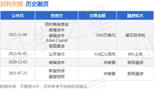 证券之星消息,根据天眼查APP于11月6日公布的信息整理,四川百利天恒药业股份有限公司基石投资轮融资,融资额3200万美元,参与投资的机构包括百时美施贵宝,奥博资本,德福资本,Athos Capital,富国基金。