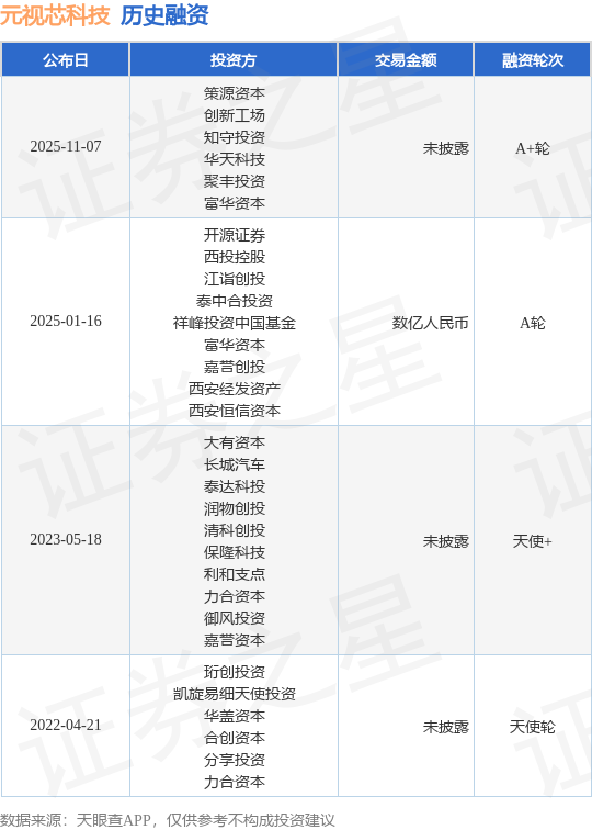 证券之星消息,根据天眼查APP于11月7日公布的信息整理,深圳市元视芯智能科技有限公司A+轮融资,融资额未披露,参与投资的机构包括策源资本,创新工场,知守投资,华天科技,聚丰投资,富华资本。