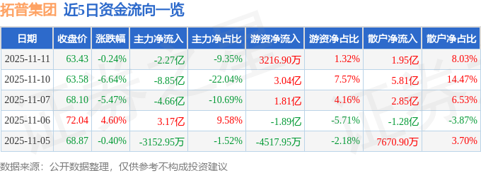 11月11日的资金流向数据方面,主力资金净流出2.27亿元,占总成交额9.35%,游资资金净流入3216.9万元,占总成交额1.32%,散户资金净流入1.95亿元,占总成交额8.03%。