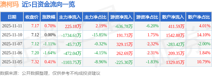 11月11日的资金流向数据方面,主力资金净流入225.18万元,占总成交额2.19%,游资资金净流出636.78万元,占总成交额6.2%,散户资金净流入411.59万元,占总成交额4.01%。