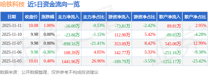 11月11日的资金流向数据方面,主力资金净流出16.0万元,占总成交额0.53%,游资资金净流出73.81万元,占总成交额2.42%,散户资金净流入89.81万元,占总成交额2.95%。