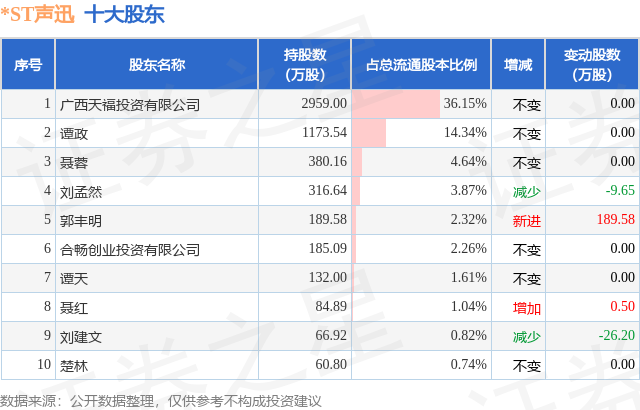 根据*ST声迅2025年三季报公布的十大股东详情如下: