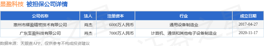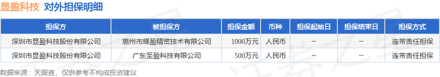 显盈科技11月9日披露2笔对外担保,被担保公司2家。对外担保明细如下表: