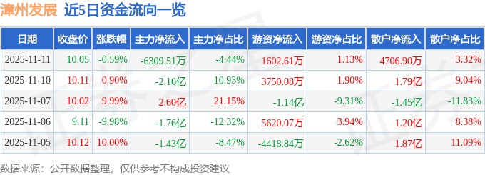 证券之星消息,截至2025年11月11日收盘,漳州发展(000753)报收于10.05元,下跌0.59%,换手率14.21%,成交量140.92万手,成交额14.2亿元。