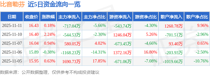 11月11日的资金流向数据方面,主力资金净流出717.04万元,占总成交额5.66%,游资资金净流出543.74万元,占总成交额4.3%,散户资金净流入1260.78万元,占总成交额9.96%。